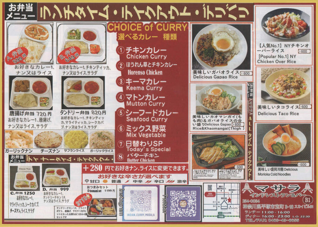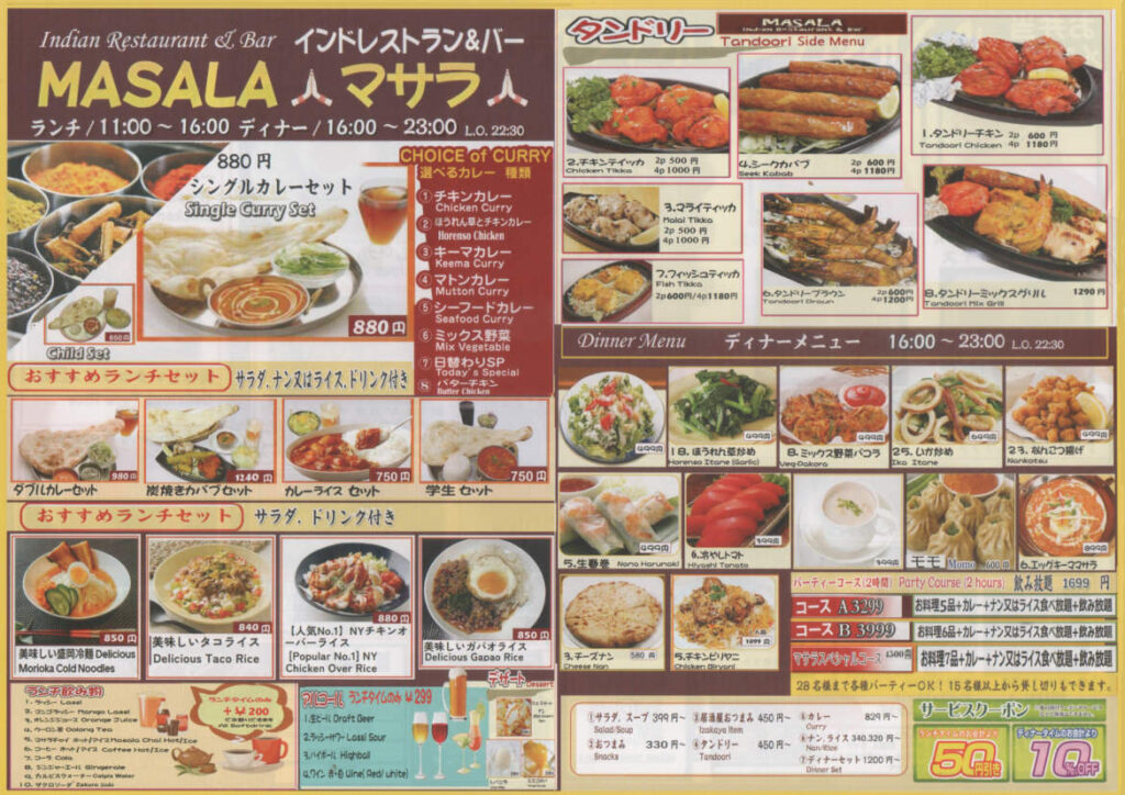 インドレストラン&バーマサラ 2026年2月6日 smilekubo ランチタイム・テイクアウト・デリバリーを開始しました。ディナータイム 16:00~23:00ランチタイム 11:00~16:00 ランチタイム・テイクアウト・デリバリー MENU 皆様のご来店をお待ちしております。 投稿ナビゲーション 前の記事SOYON ヘアサロン 新規開店次の記事駅周辺地区をみんなのリビングに